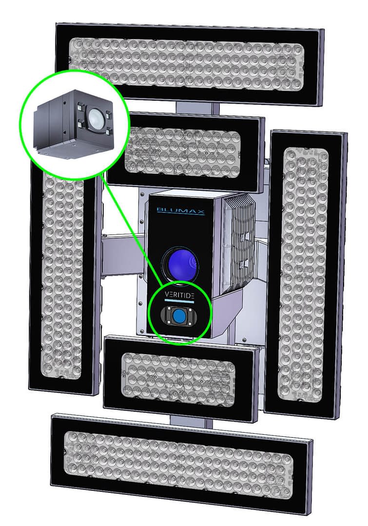 Veritide selected LUCID’s Helios 2+ Time-of-Flight (ToF) 3D depth camera for its hardware trigger capability, which resolved the synchronization issue encountered with previous camera models. By integrating the Helios2+ with the BluMax system’s triggering mechanism, Veritide achieved the seamless synchronization of depth and fluorescence images. Another key feature of the Helios2+ camera was its high-speed mode, which uses a single-phase measurement for depth perception, enabling faster data acquisition to achieve the targeted 50 fps, aligning with their detection camera.